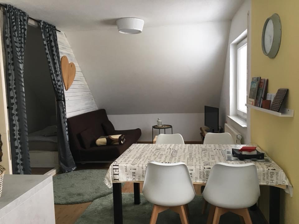 Die Ferienwohnung, ca. 50 qm, befindet sich im Obergeschoss des Hauses in ruhiger Lage, mit herrlicher Sicht auf Lützel und dem Rothaargebirge. Sie ist modern, komfortabel und gemütlich eingerichtet. Flur mit Garderobe, Bad mit Dusche und Waschmaschine. Schlafzimmer mit zwei Einzelbetten oder auch als Doppelbett zum zusammenschieben geeignet. Im Wohnzimmer befindet sich eine abgegrenzte Schlafnische und Sat-TV. Die Küche ist komplett ausgestattet, mit Spülmaschine, Ceranfeld, Backofen, Gefrierfach, Kaffeemaschine, Mikrowelle, Senseo, etc.